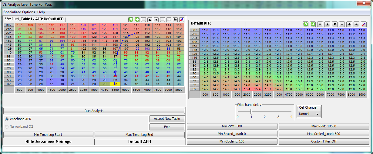 VE Analysis. Normally it is best to filter records where the engine has not reached full operating temperature as the additional